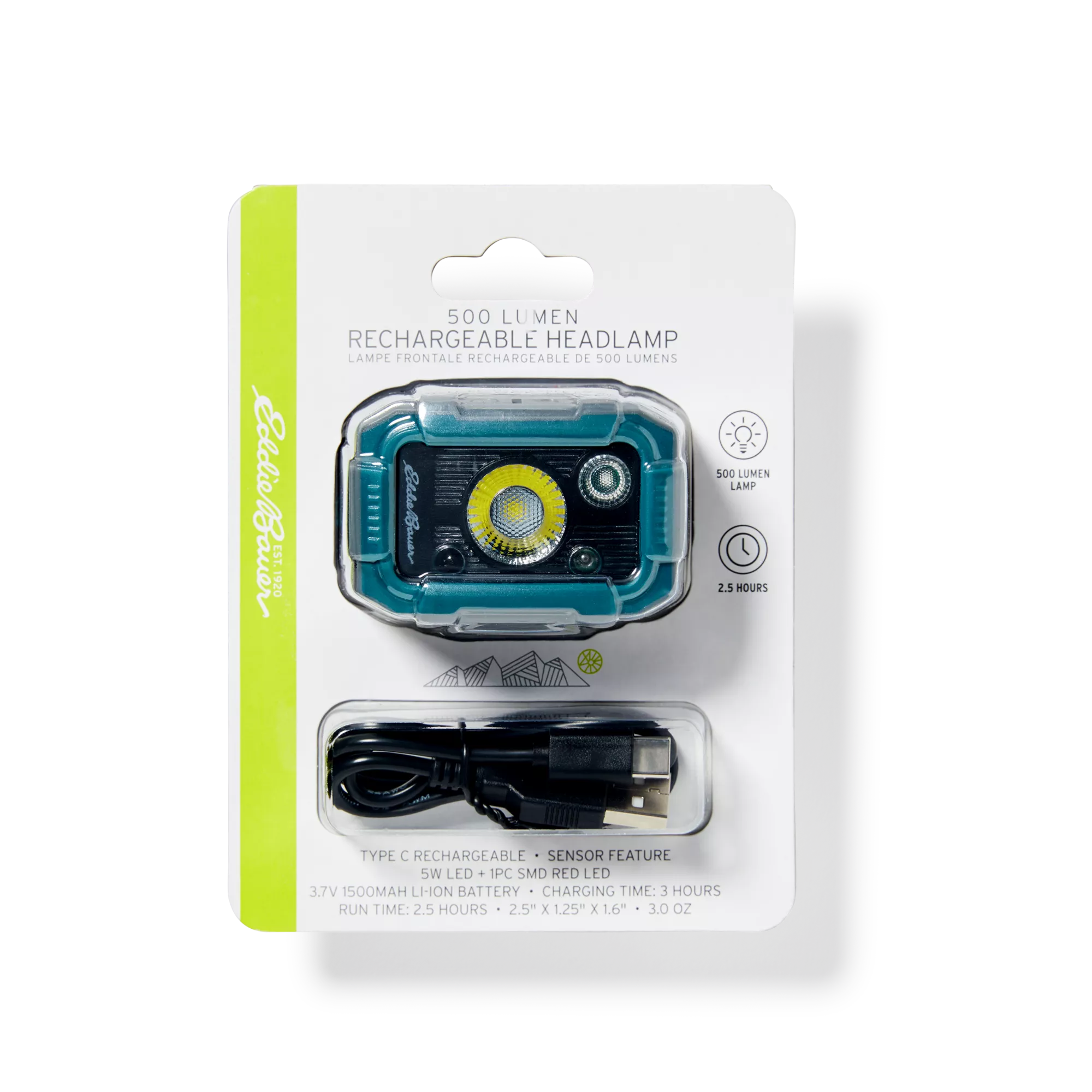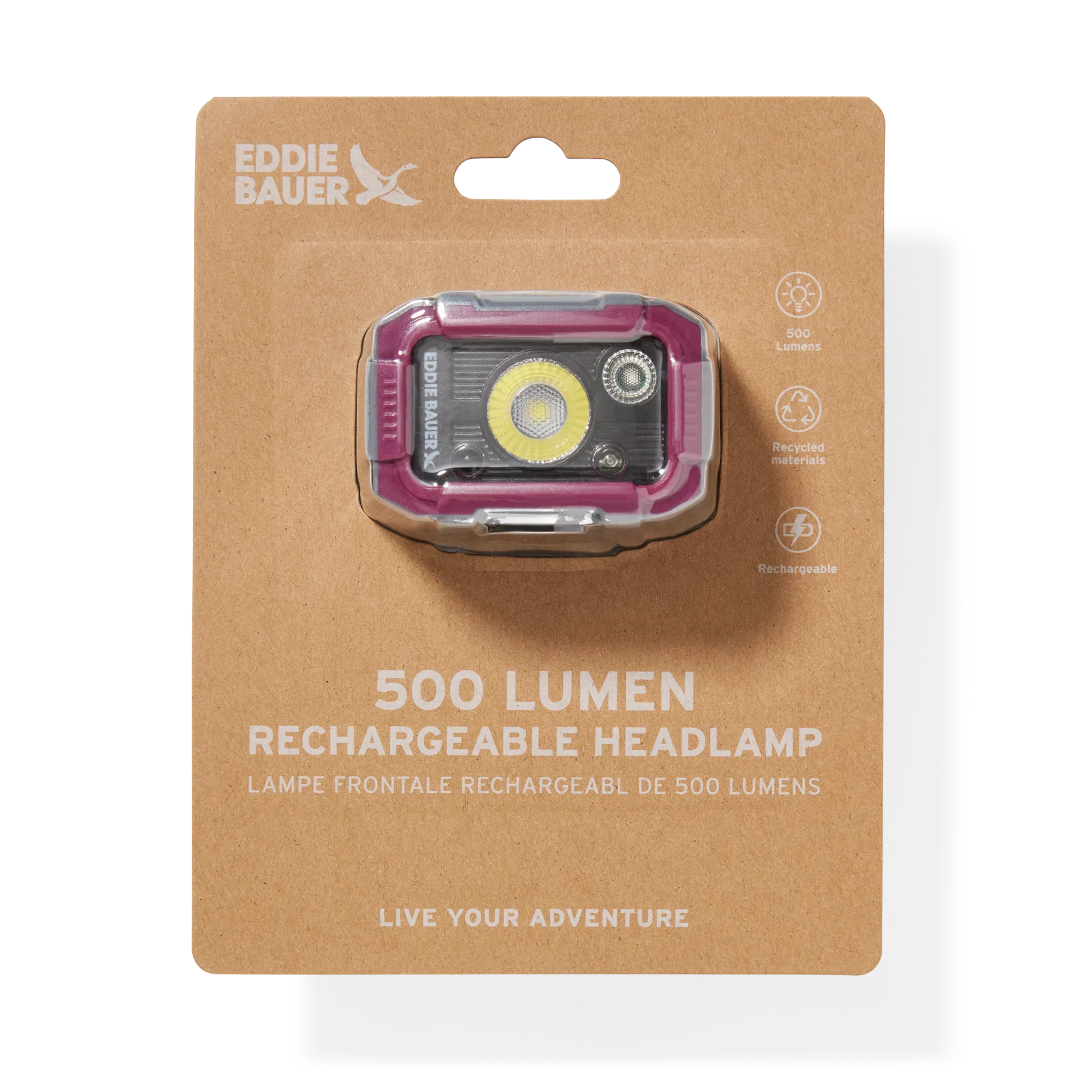 Seeing your way across a dark campsite, or at home during a power outage is easy with our newest, brightest headlamp. This rechargeable model puts out 500 lumens with its 5W LED and 1-piece SMD LED.