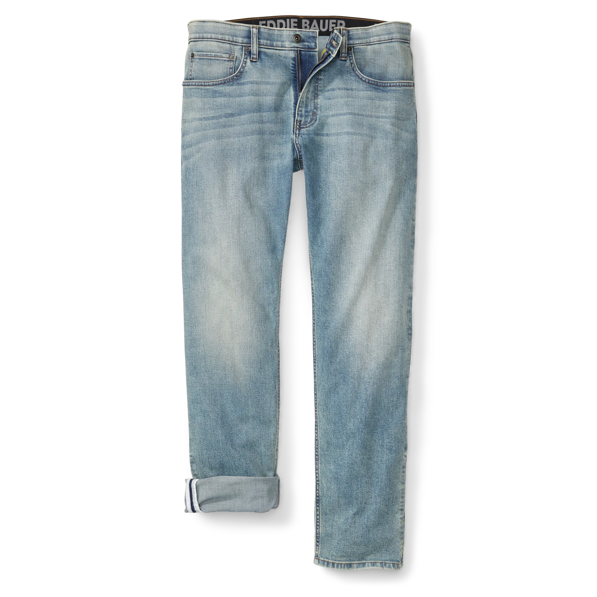 The most comfortable jeans you’ll ever wear, this pair is ideal for travel.Cotton is blended with recycled Repreve® polyester and spandex to create an exceptional performance denim. The Eddie Bauer Signature active waistband is constructed with a clean finish to minimize bulk.