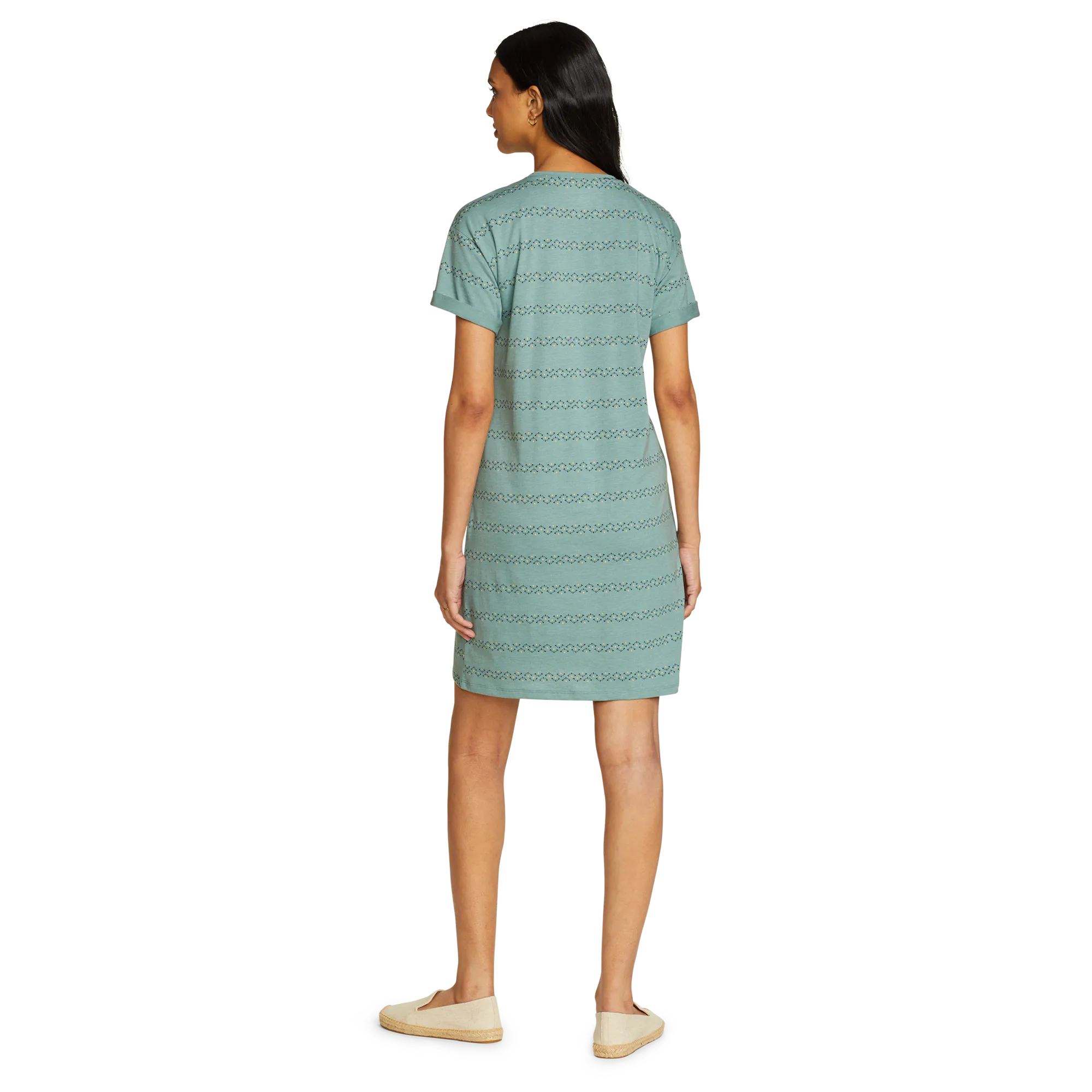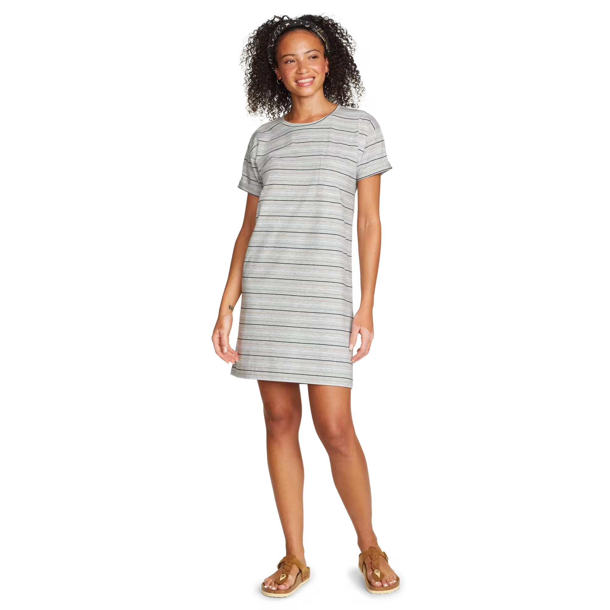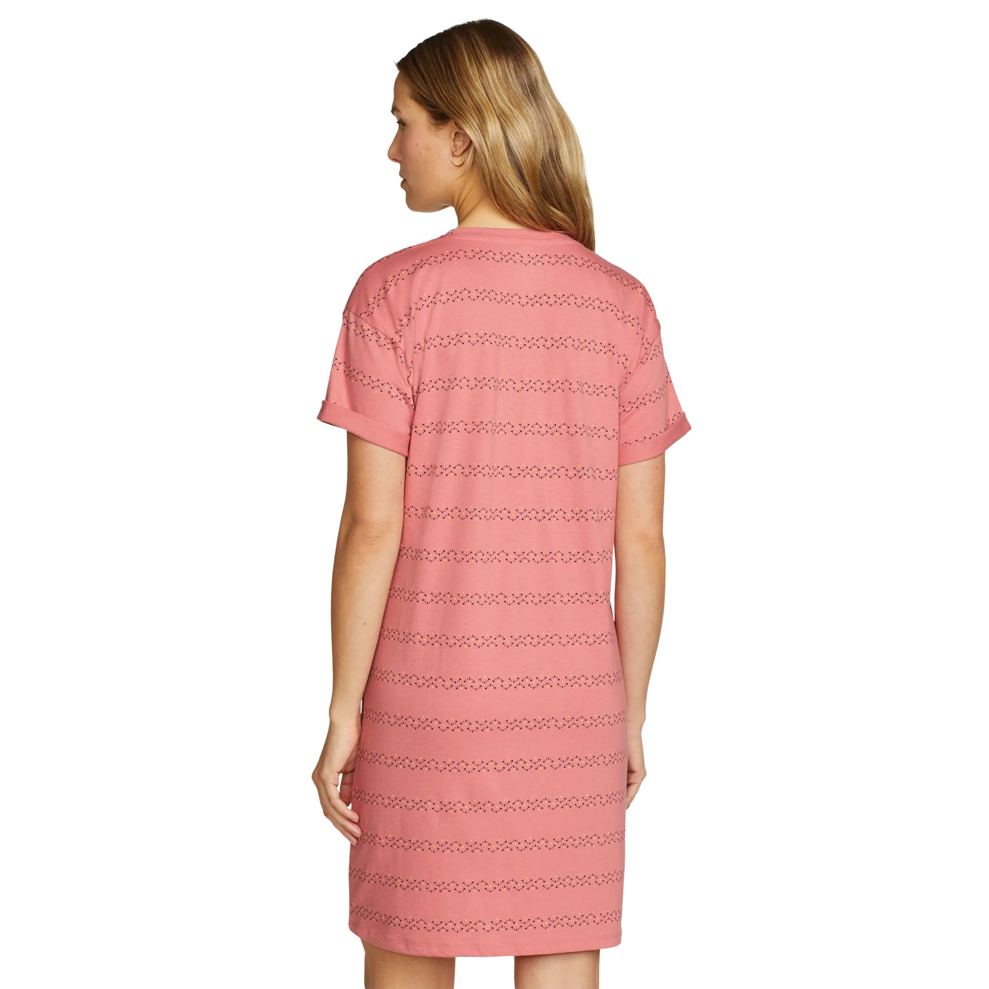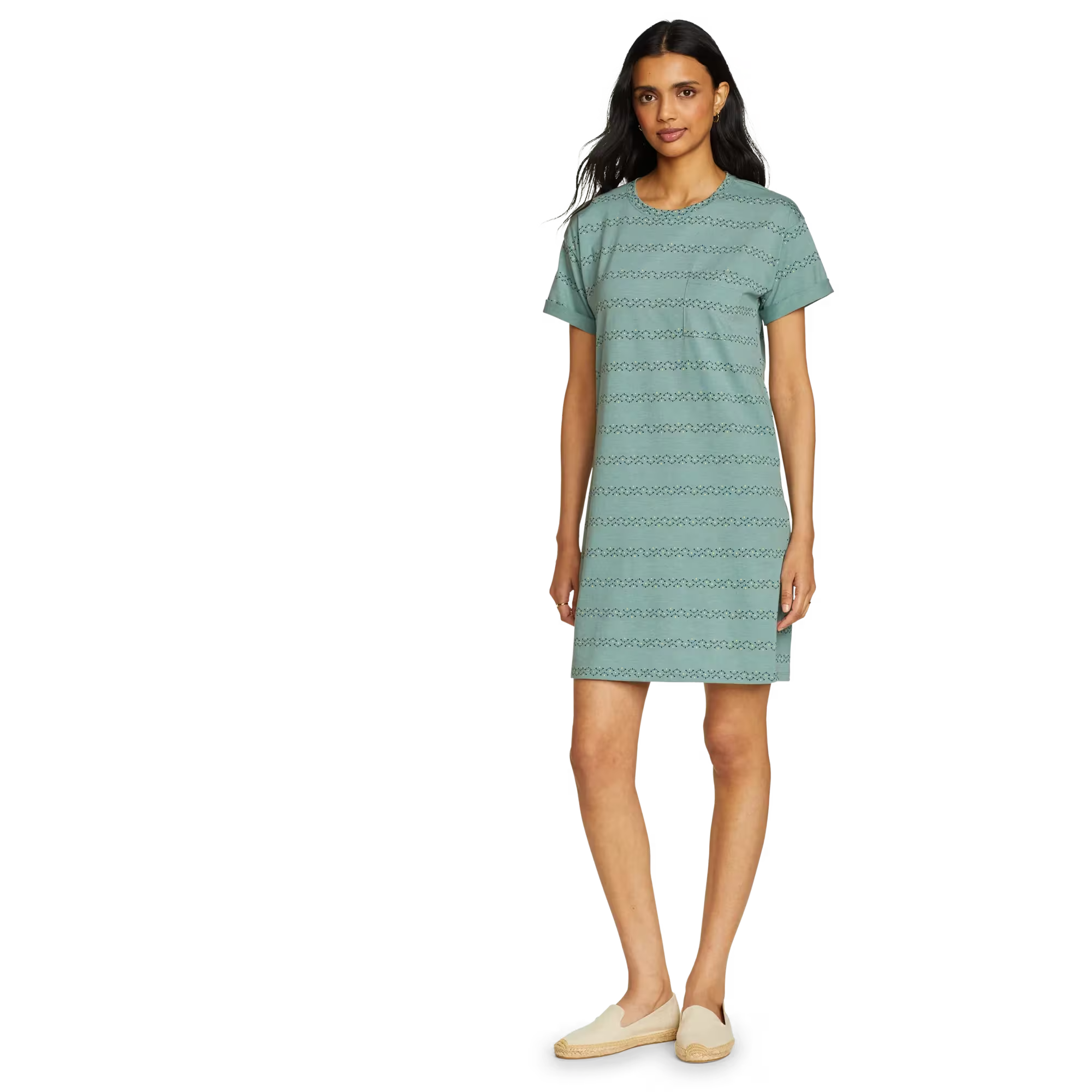 Soft, moisture-wicking fabric makes this knee-length T-shirt dress an all-day favorite. Its simple, flattering lines and easy-care convenience also make it a great traveler.