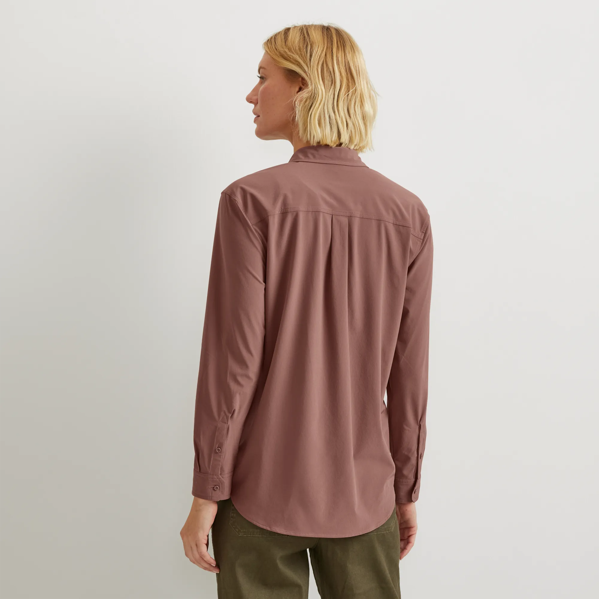 This versatile favorite combines four-way stretch mobility, moisture-wicking comfort, built-in sun protection, and easy-care convenience—all in a flattering, updated style that’s lightweight, easy-packing, and wears beautifully in a wide range of situations.