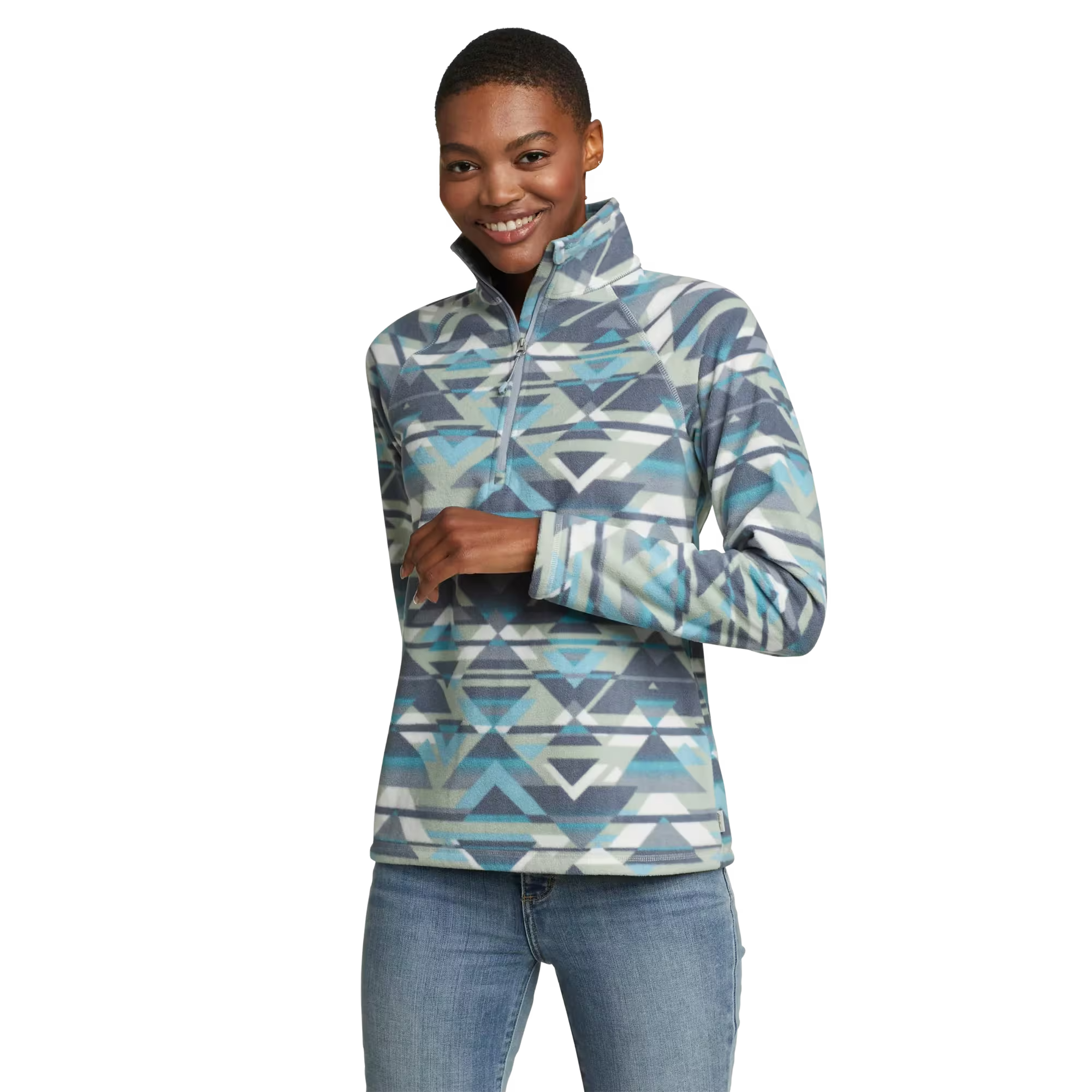 Comfortable, quick-drying, 200-weight polyester fleece adds lightweight warmth and won’t absorb moisture. Streamlined design for layering and looks great on its own as well. Deep zip at center chest for quick venting.